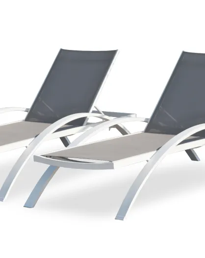 2 bains de soleil BARCELONA blanc/gris - 195x74x32 cm