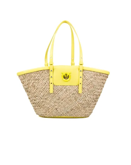 Panier Love Summer Rafia + Vit beige/jaune - 27x46x21 cm