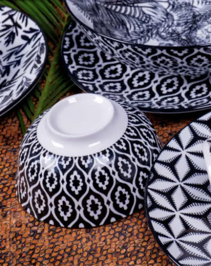 Lot de 6 moyens bols Villa les Pins en porcelaine noirs - 15,2×7cm