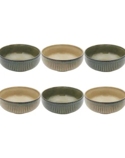 Lot de 6 assiettes creuses Terralha en céramique vert/beige - 20,2x5 cm