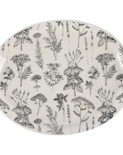 Plat de service ovale blanc/ gris - D. 30,5x24 cm