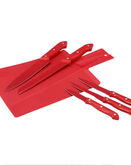 Lot de 5 Couteaux de cuisine + planche à découper rouges