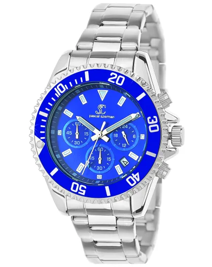 Montre homme quartz argenté/bleu