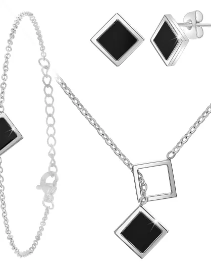 Parure Collier, Bracelet & Boucles d'oreilles Argent Perles d'Eau Douce noires