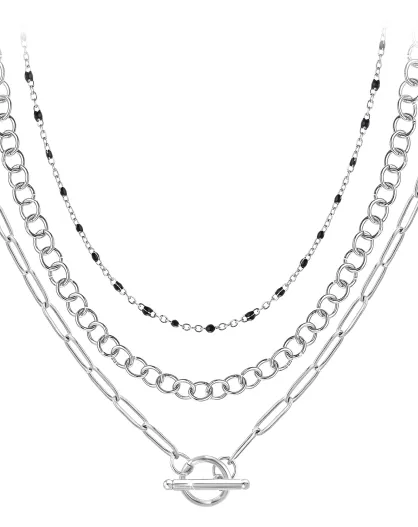 Lot de 3 colliers en acier inoxydable argenté