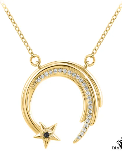 Collier Etoile Filante orné d'un véritable diamant noir doré