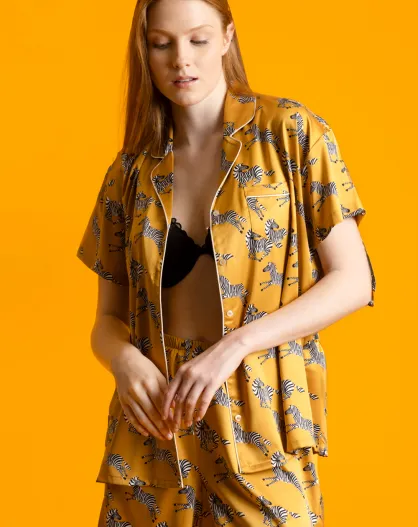 Pyjama zèbre doré à manches courtes ouvertes Luxury ocre