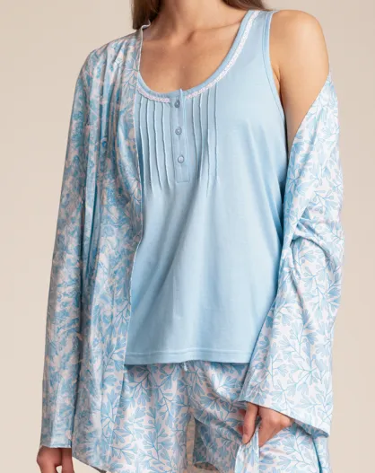 Déshabillé à manches longues classic, motif feuilles printanières bleu
