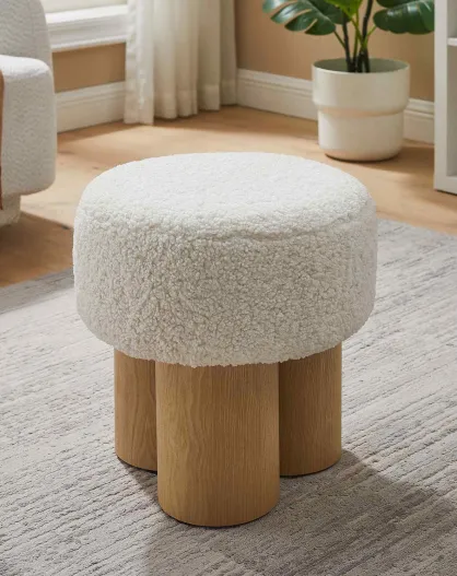 Fever - Pouf rembourré tissu bouclé blanc - D.35 cm