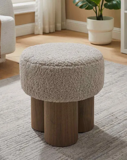 Fever - Pouf rembourré tissu bouclé taupe - D.35 cm
