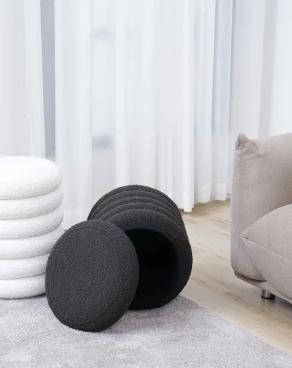 Fever - Pouf rembourré tissu bouclé blanc - D.35 cm