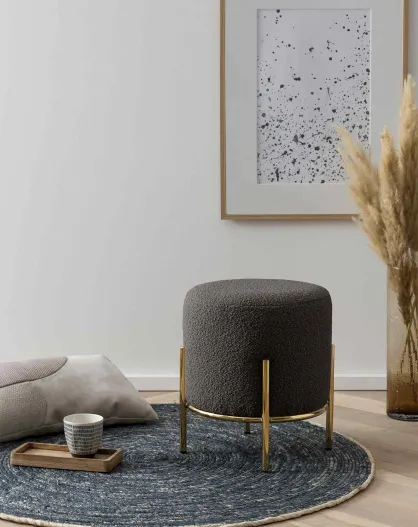 Fever - Pouf rembourré tissu bouclé anthracite - D.35 cm