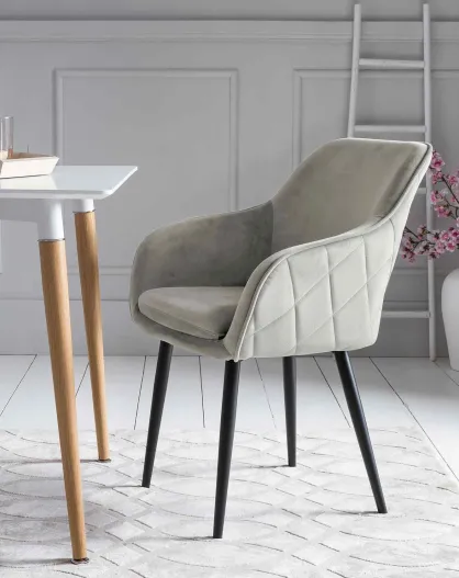 Fever - Chaise en velours grise avec dossier matelassé - 55x50x80 cm