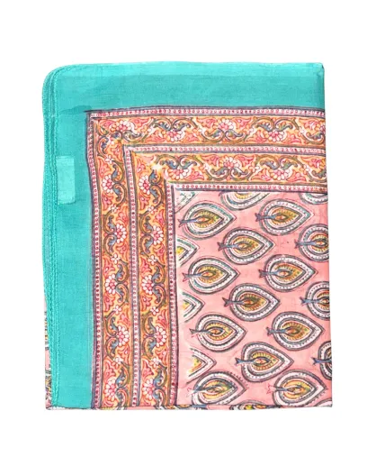 Paréo Pondichéry en coton turquoise vif/rose