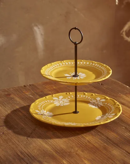 2 Corbeilles à fruits en Grès Iris beige/marron - 27.5x6/32.5x6.5 cm