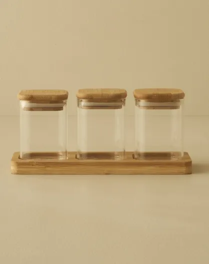 Lot de 3 pots à épices Alice avec couvercles en bambou naturel