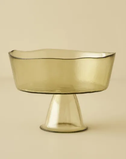 Plat de présentation en verre sur pied Geo vert - 21x16 cm