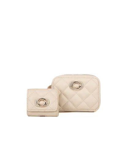 Coffret cadeau 2 supports pour AirPods + mini pochette taupe - 7x6.5x2 cm/11.5x9x2 cm