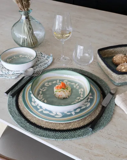 Lot 6 sets de table rond en jonc de mer Luna naturel et vert - 38cm