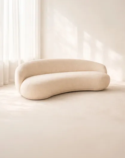 Canapé en tissu Marlo chenille incurvé 3 places beige- 231x116x73cm