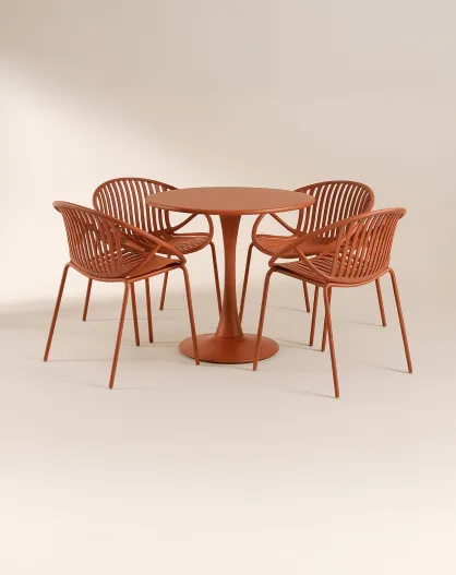 Ensemble de table/4 fauteuils de table polypropylène et métal Calypso brique