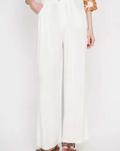 Pantalon coupe ajusté à jambe large en lin mélangé Danielle blanc