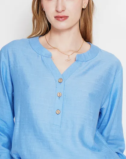 Tunique col tunisien en lin mélangé Paulette azur