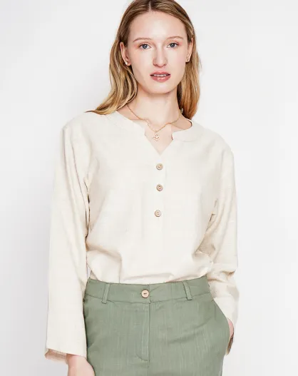 Tunique col tunisien en lin mélangé beige
