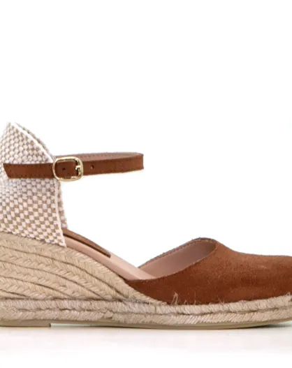 Sandales compensées suédé en velours de cuir Livia caramel