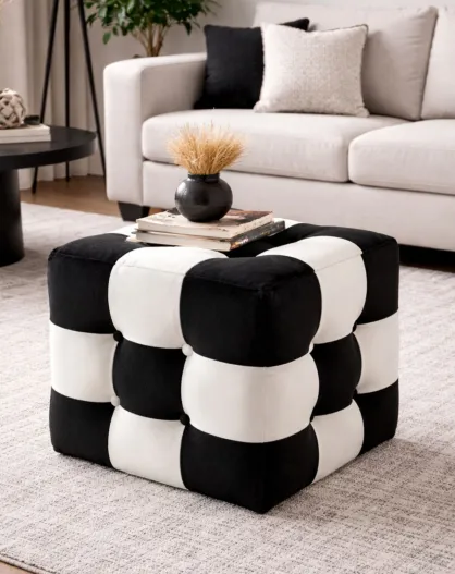Pouf Patchwork noir, blanc - 42x42x42 cm