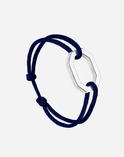 Bracelet Octogone 22mm plaqué argent/bleu marine