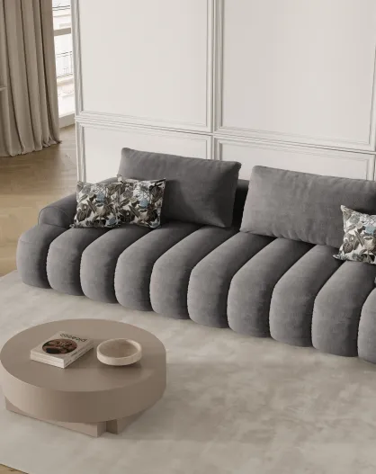 Canapé velours convertible avec coffre de rangement Simona 4 places gris - 250x100x84 cm