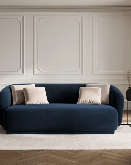 Canapé velours Louis 2 places bleu roi - 180x93x74 cm