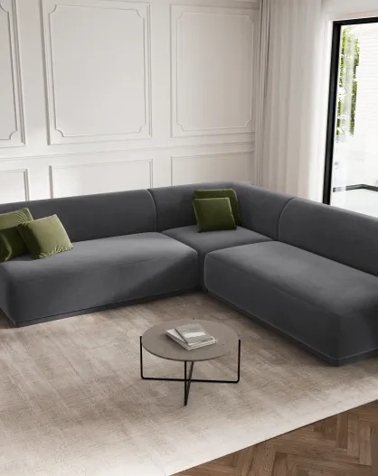 Canapé d'angle symétrique en velours Louis 5 places gris foncé - 256x256x74 cm