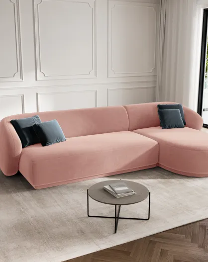 Canapé d'angle droit velours Louis 4 places rose - 260x155x74 cm