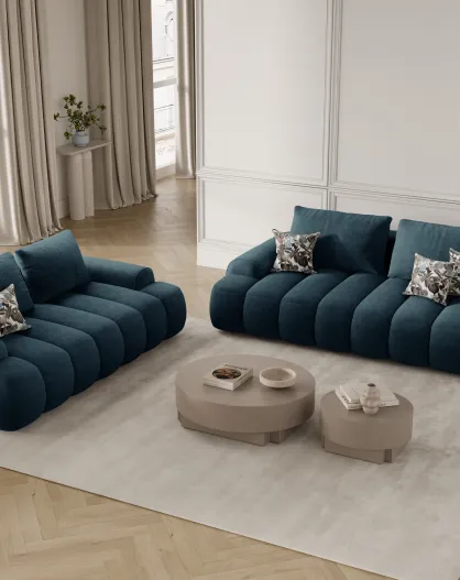 Canapé velours Simona 2 places pétrole profond - 175x100x84 cm