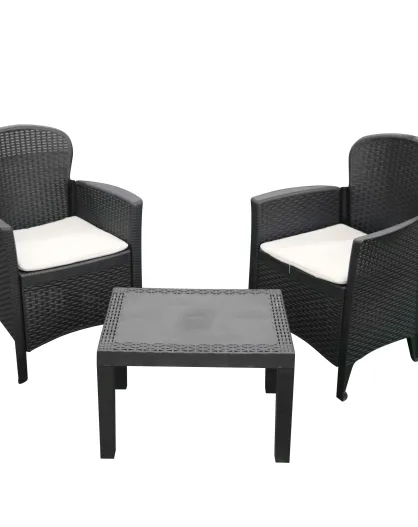 Salon de jardin Le plastik Akita avec coussins et table noir- 59x46x40cm