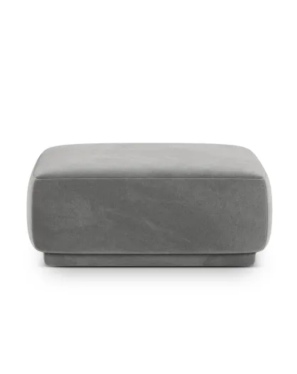 Pouf velours Louis 1 place gris - 90x90x42 cm
