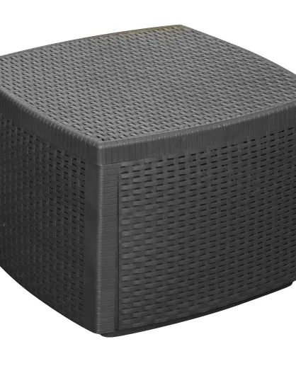 Table et coffre de jardin Naxos effet rotin - 54x54x39,5 cm
