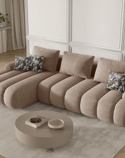 Canapé d'angle gauche velours convertible avec coffre de rangement Simona 3 places beige foncé - 275x142x84 cm