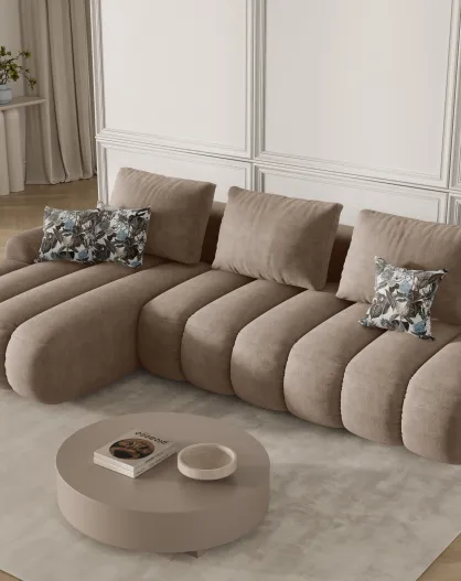 Canapé d'angle gauche velours convertible avec coffre de rangement Simona 4 places beige foncé - 275x142x84 cm