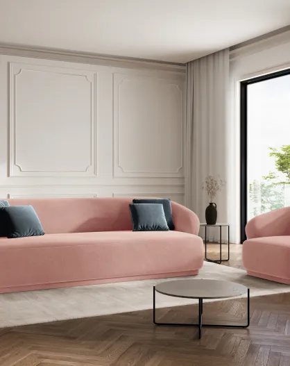Fauteuil en velours Louis 1 place rose - 93x90x74 cm