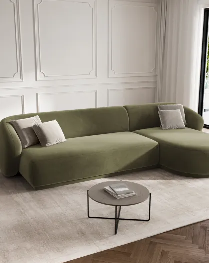 Canapé d'angle droit velours Louis 4 places vert - 260x155x74 cm