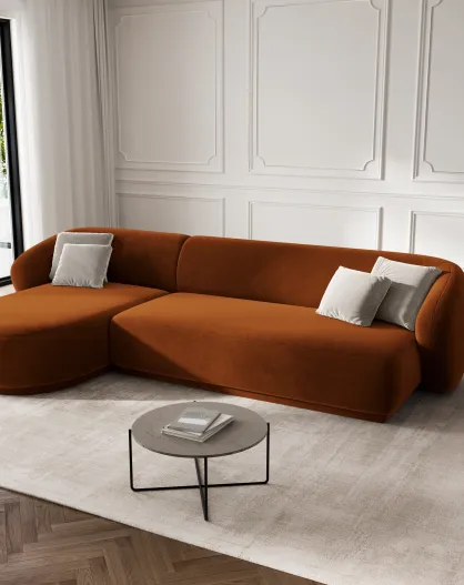 Canapé d'angle gauche velours Louis 4 places terracotta - 260x155x74 cm