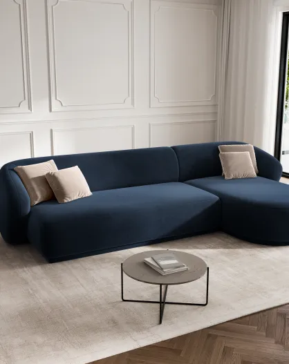 Canapé d'angle droit velours Louis 4 places bleu roi - 260x155x74 cm