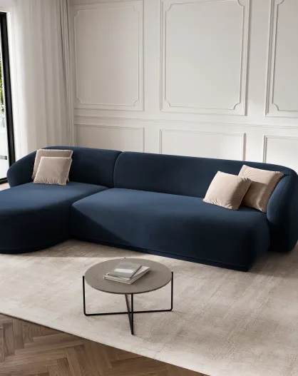 Canapé d'angle gauche velours Louis 4 places bleu roi - 260x155x74 cm