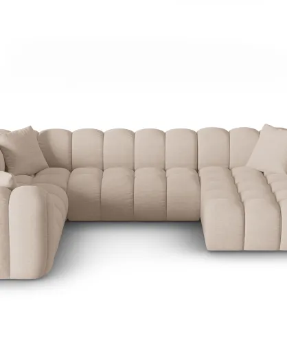 Canapé d'angle gauche panoramique modulable Elise 6 places cappuccino - 330x238x70 cm