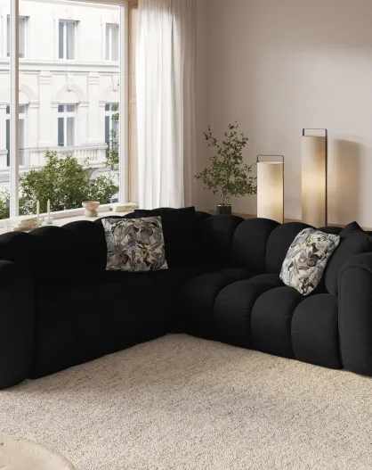 Canapé d'angle symétrique modulable Elise 5 places noir - 238x238x70 cm