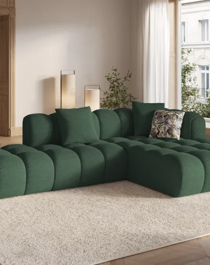 Canapé d'angle droit modulaire Elise 4 places vert de mer - 300x190x70 cm