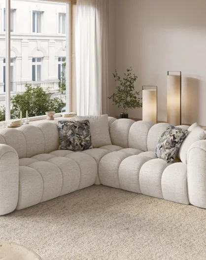 Canapé d'angle symétrique modulable Elise 5 places beige - 238x238x70 cm